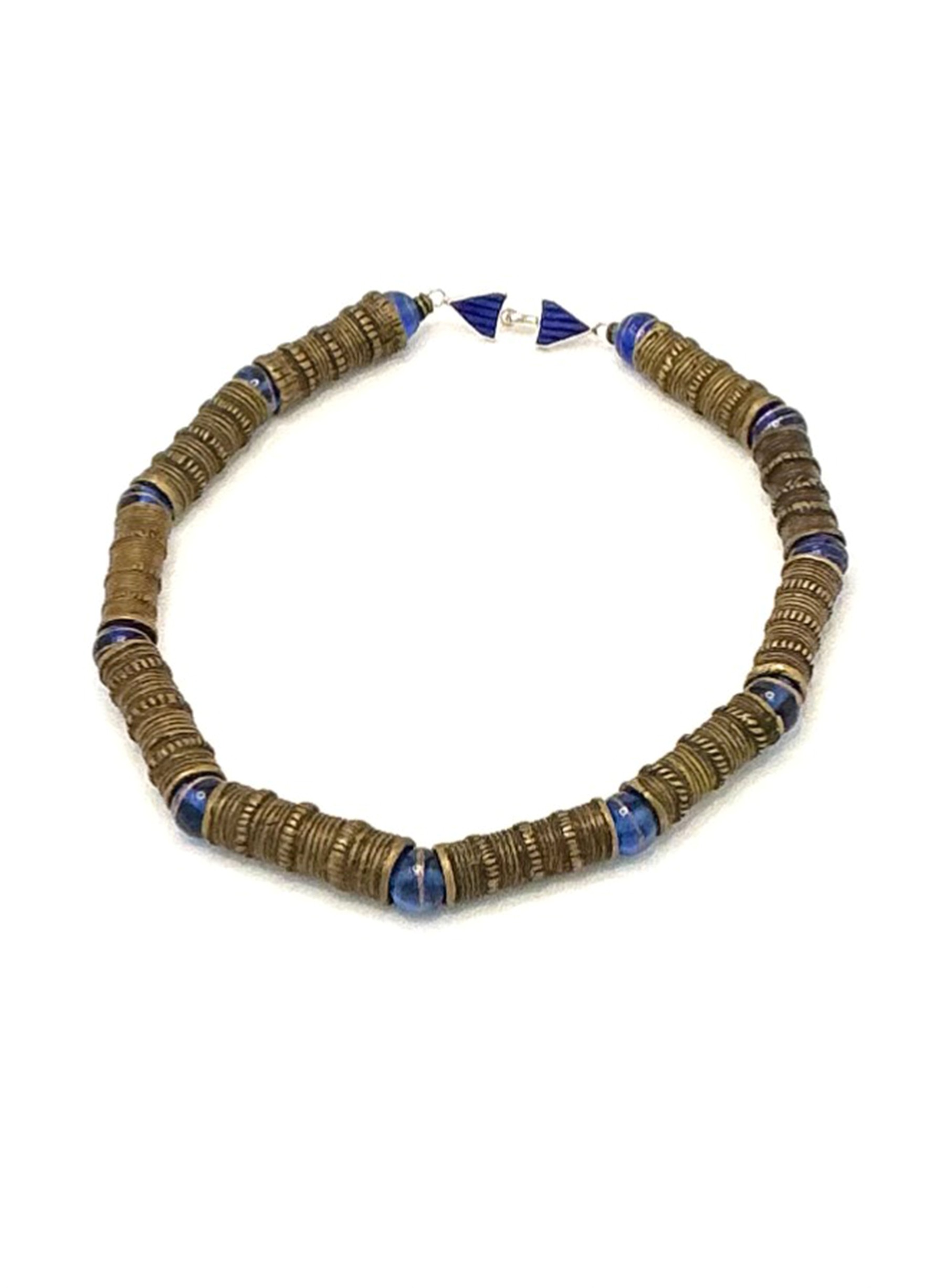Antique Handmade Tiv Bronze Bead and Blue Venetian Bead Necklace