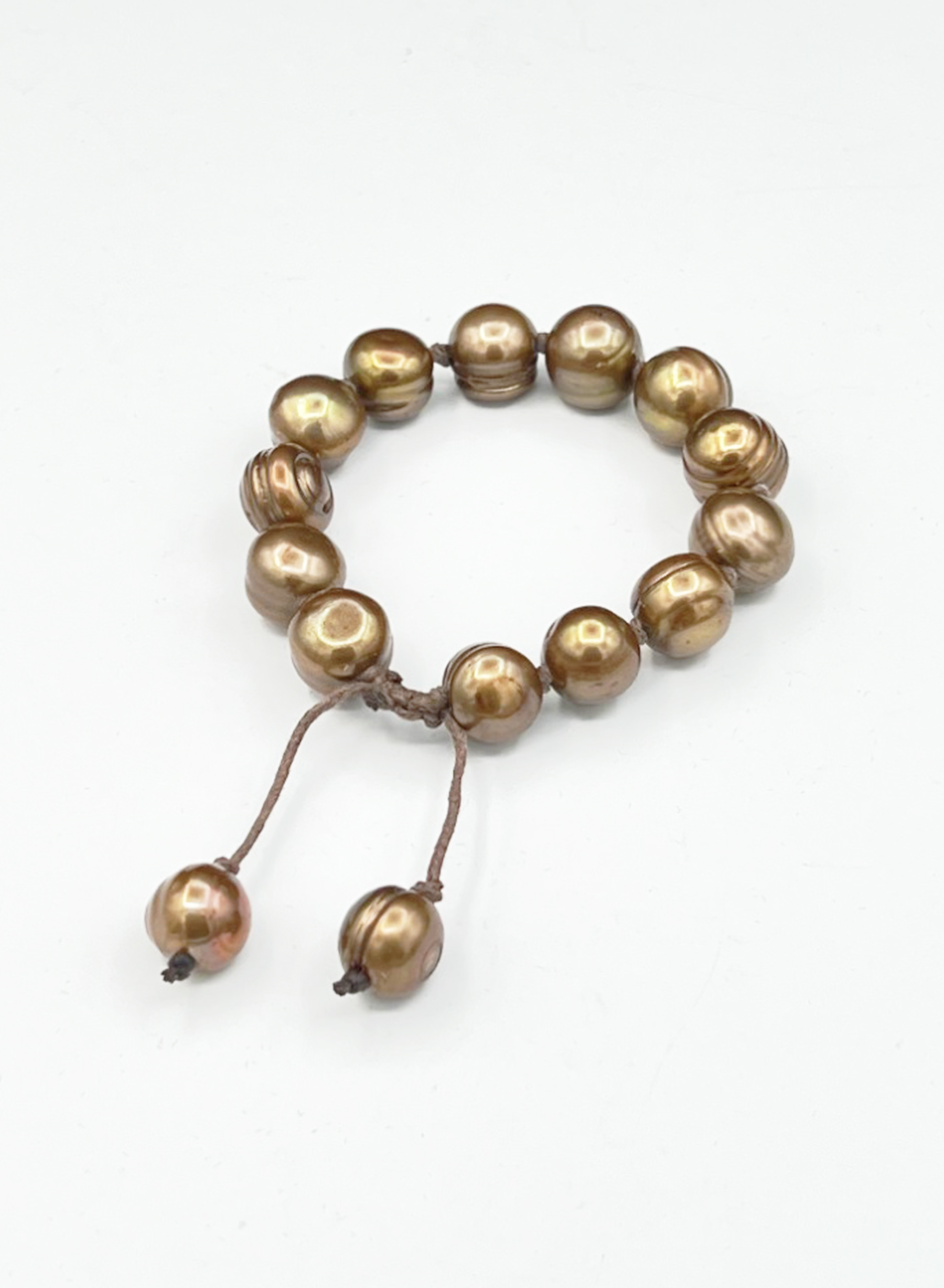 Adjustable Length: 6″-7″ Hand knotted copper freshwater pearl adjustable bracelet.